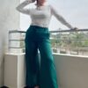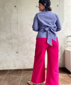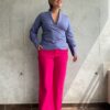 Deslumbra con estilo y color en nuestro nuevo palazo fucsia. Su vibrante tonalidad te hará destacar en cualquier ocasión, mientras que su corte palazo favorece una silueta elegante y alargada.